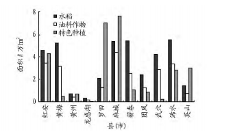 2012年黄冈市优质水稻种植基地达到2.4万公顷以上的县市有6个,其中黄梅、蕲春、浠水优质水稻种植基地已达4.67万公顷以上。油料种植规模也在不断增加,麻城市油料种植位居榜首,达4.33万公顷。特色种植也已初具规模,特别是板栗种植已成为大部分县市特色种植的首选。