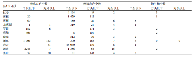 ▲2012 年,红安县全县规模生猪养殖大户达到1188户,万头养猪场2个,种猪扩繁场1个,中型奶牛养殖场3个;