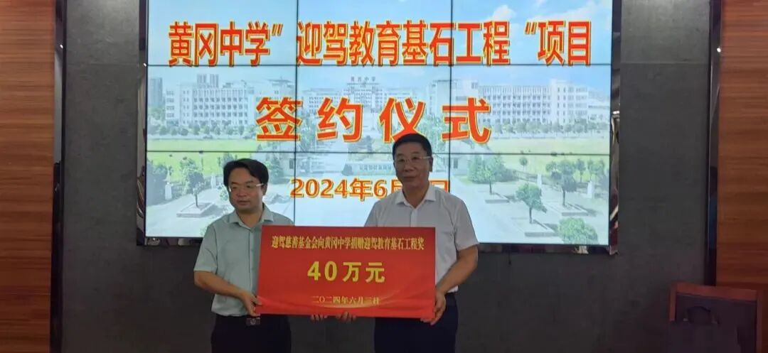 6月4日,黄冈中学“迎驾教育基石工程”项目签约仪式在黄冈中学举行。今年,迎驾慈善基金会将捐赠40万元,奖励黄冈中学优秀师生,支持黄冈教育事业发展。