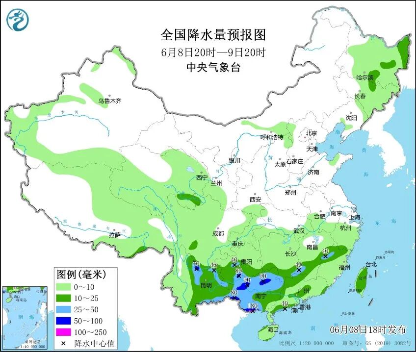 中央气象台预计,8日夜间至11日,云南、贵州、华南、江南大部等地有中到大雨,其中,云南东部、贵州南部、广西北部和南部沿海、湖南中南部、江西中南部、浙江南部、福建西部和北部、广东南部以及海南岛等地局地有暴雨或大暴雨。