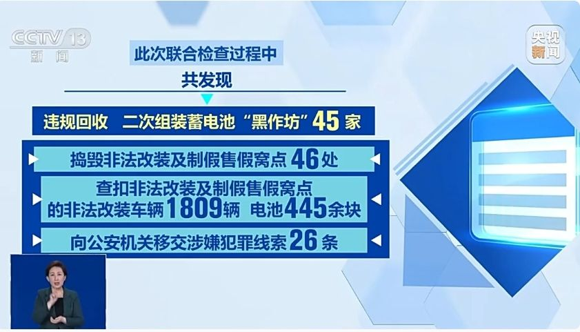 近日,针对非法拼装改装电动自行车和蓄电池等危害公共安全的突出问题,市场监管、公安、消防等多部门组成联合检查组,对各地电动自行车经营网点和维修店铺开展了专项检查。
