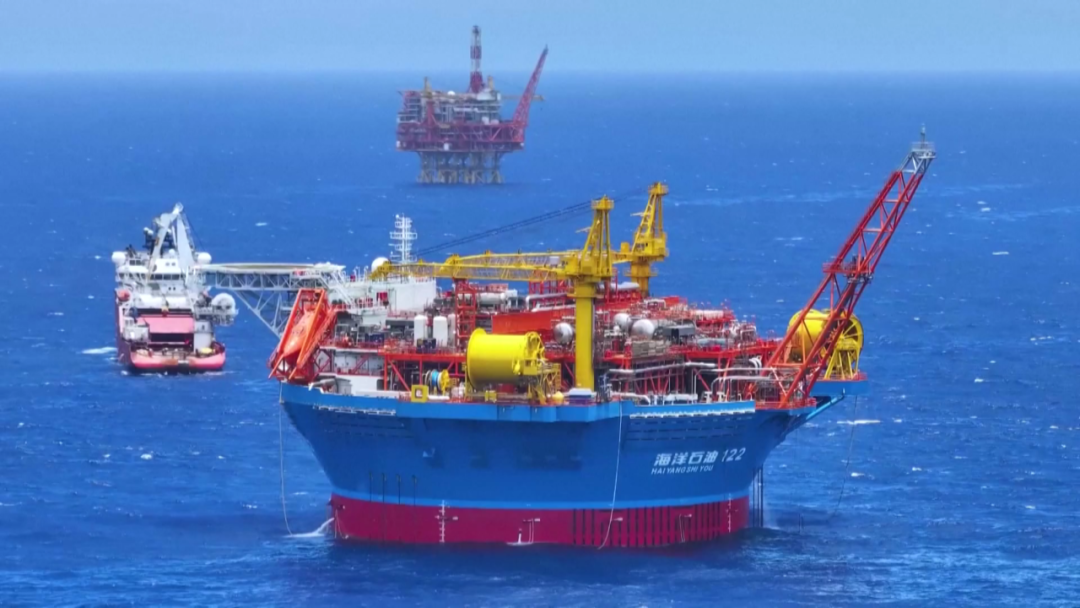 △“海葵一号”总重近37000吨,最大储油量达6万吨,每天可处理原油约5600吨。