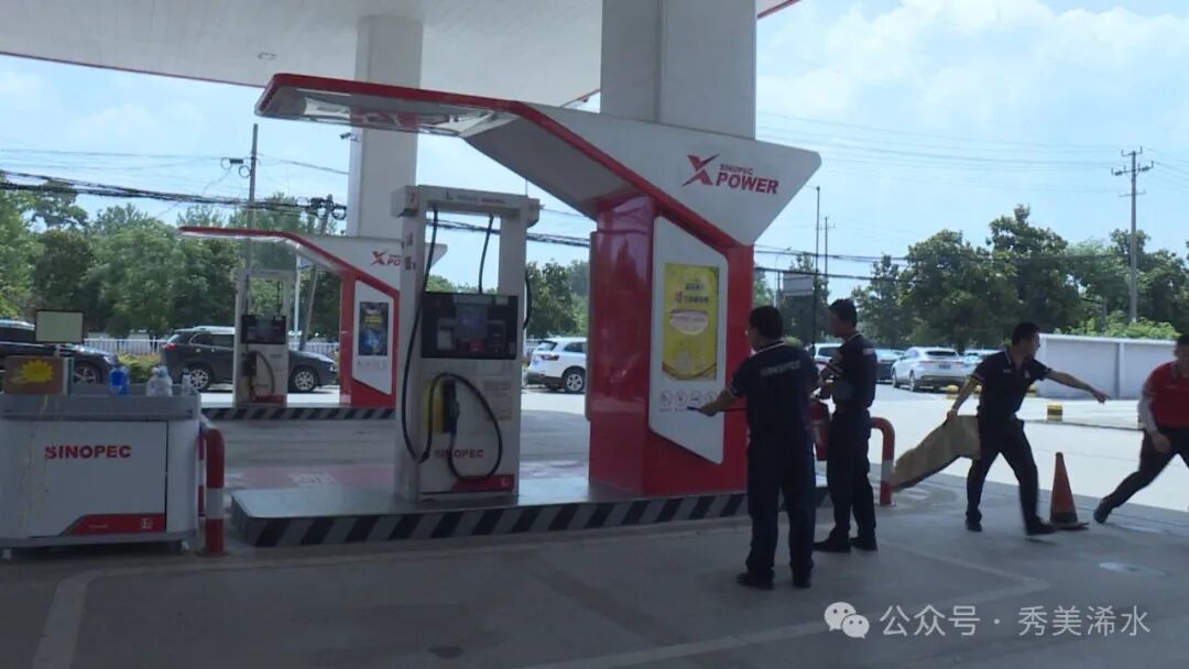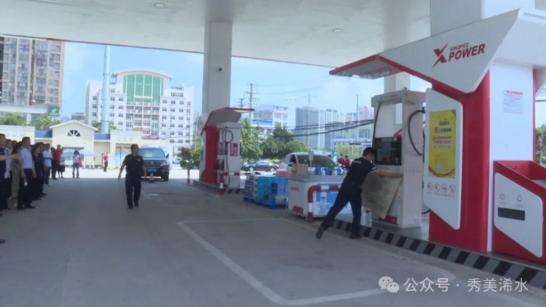 随后,又模拟处置加油车辆起火情况。险情发生后,工作人员迅速关闭阀门,同时组织人员扑灭火源,疏散人员,保障现场安全。演练过程中,工作人员协作配合,反应迅速,处置得当,达到了预期效果。