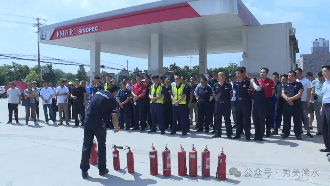 活动中,大家观看了安全教育纪录片,集中学习了灭火器、灭火毯等灭火器材保养使用知识,县消防救援大队工作人员开展了消防安全培训,并现场开展安全应急演练。本次演练设定的情景为加油机突然起火。火情发生后,工作人员第一时间关闭加油机电源并呼救,参与演练人员立即用灭火毯、灭火器扑灭火源,疏散周围人员。