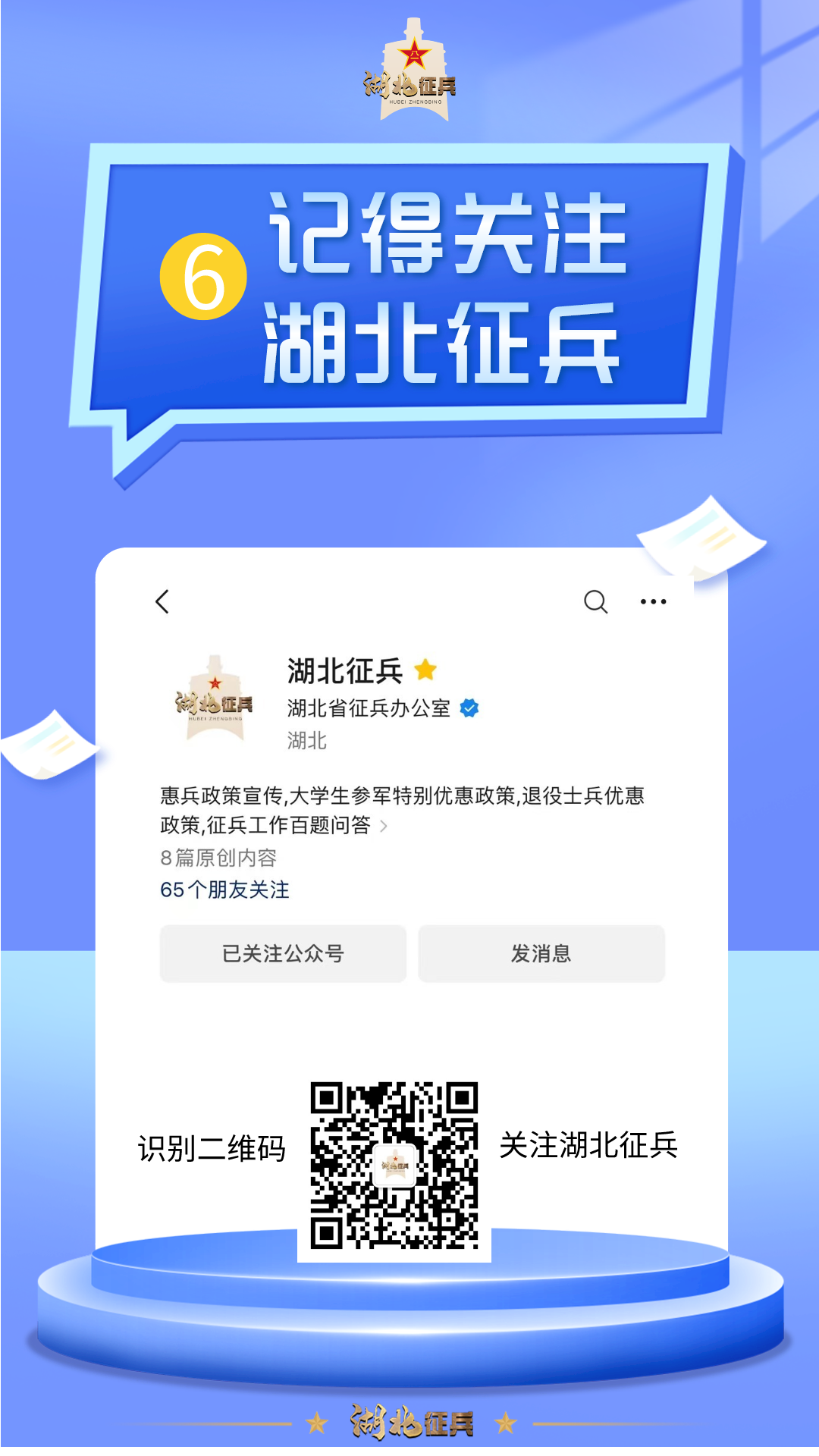 湖北征兵提醒:应征报名一定要认准官方正规渠道发布的信息,应征咨询也要认准官方平台。“湖北征兵”微信公众号是湖北省人民政府征兵办公室唯一官方认证账号。