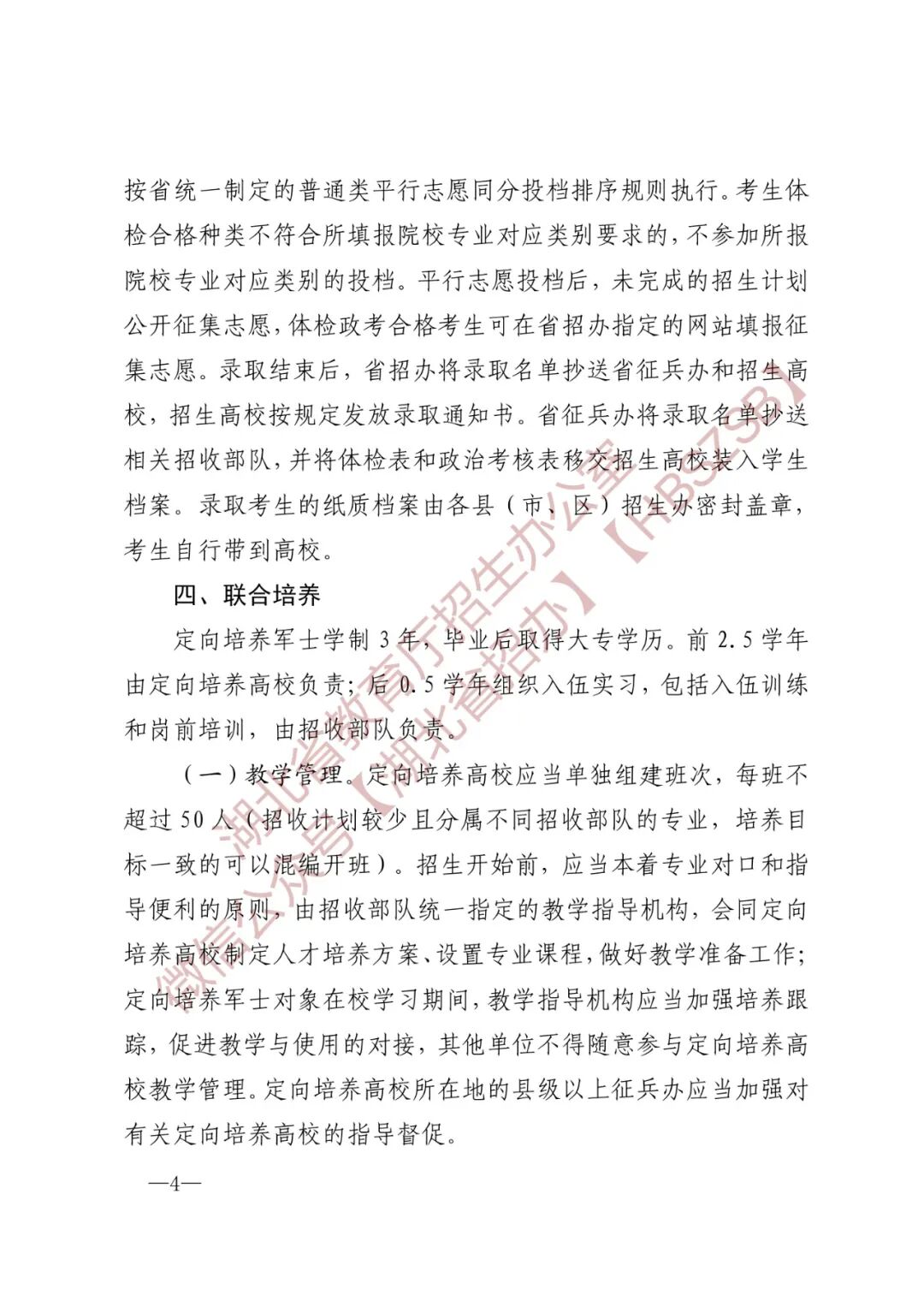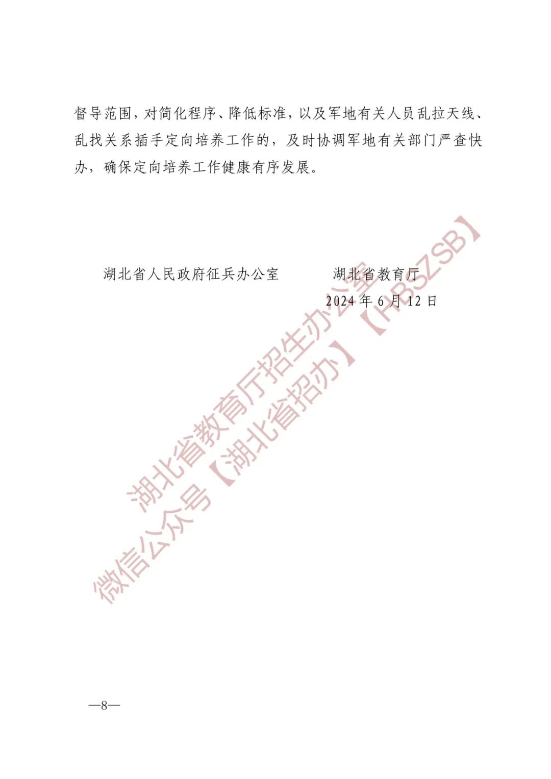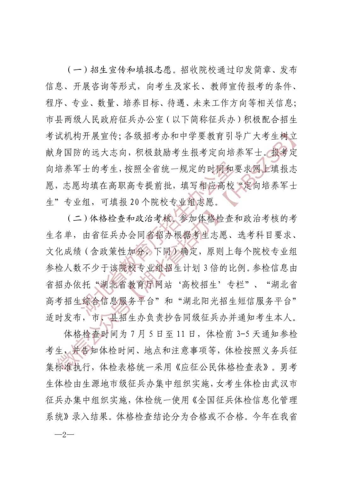 湖北2024年定向培养军士招收工作正式启动!湖北省人民政府征兵办公室湖北省教育厅近日联合下发《关于做好2024年招收定向培养军士工作的通知》明确具体事项如下