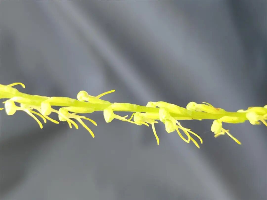 大别山区发现新记录物种叉唇角盘兰叉唇角盘兰(Herminium lanceum)为多年生陆生兰类,高10厘米至75厘米。块茎近圆球形,基部膨大,肉质。茎纤细,中部具3至4枚叶。叶条状披针形,急尖或渐尖。总状花序呈圆柱状,花密集,具10至40余朵,花小,绿色。广布于我国东起山东、西至西藏、北至东北、南至广西及台湾;也分布于欧洲和亚洲的亚热带和温寒带其他地方。生于海拔730米至3400米山坡杂木林至针叶林下、竹林下、灌丛下或草地中。