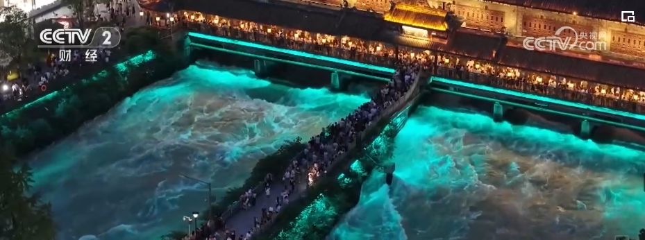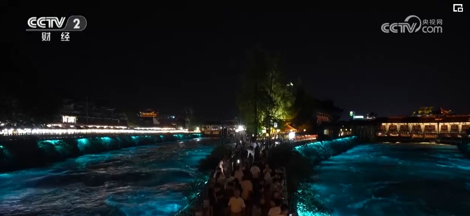 进入夏季,各地“夜经济”加速升温。在四川成都,古老的都江堰开启了如梦似幻的潮流夜景打卡点,吸引了众多游客。