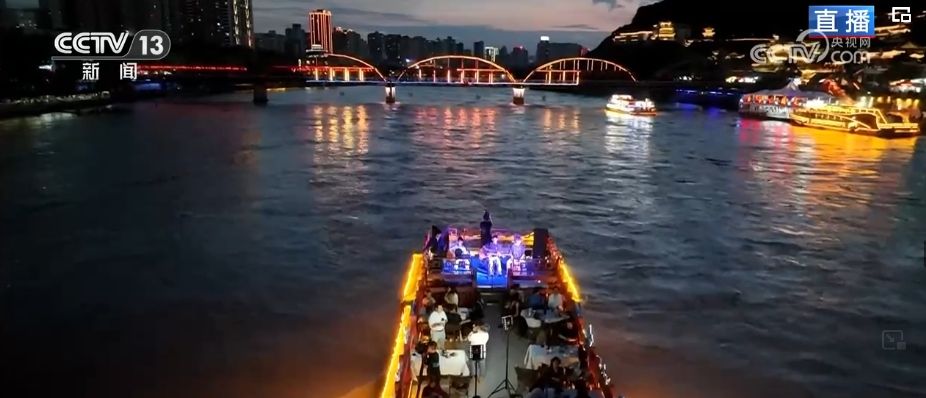 西北的甘肃兰州华灯初上。7月—9月是兰州传统意义上的旅游高峰。但是,现在旅游高峰已经提前到来,之前游客到兰州,在黄河边走一走,看看中山桥是首选。这一两年,黄河夜游成为游客来到兰州后的新体验。乘坐游轮,身处光影斑驳的黄河河面,穿梭在一座座现代和古老遥相呼应的大桥中间,欣赏着两岸美丽的城市风光,这种感觉用兰州话来讲,就是“舒坦”。
