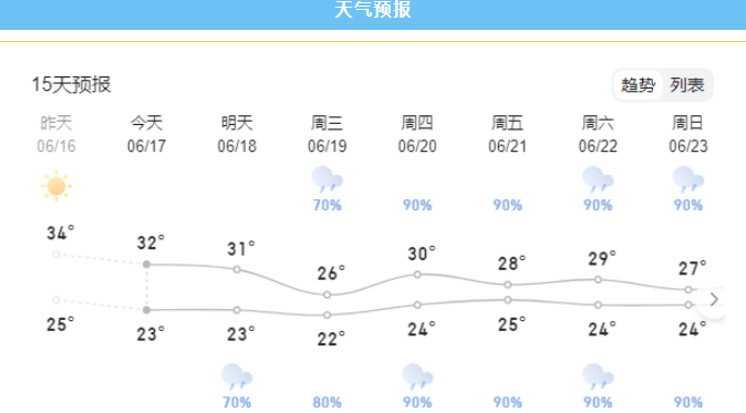 今天是2024年6月18日,星期二。多云转中雨,温度23℃到31℃,空气质量类别为良。