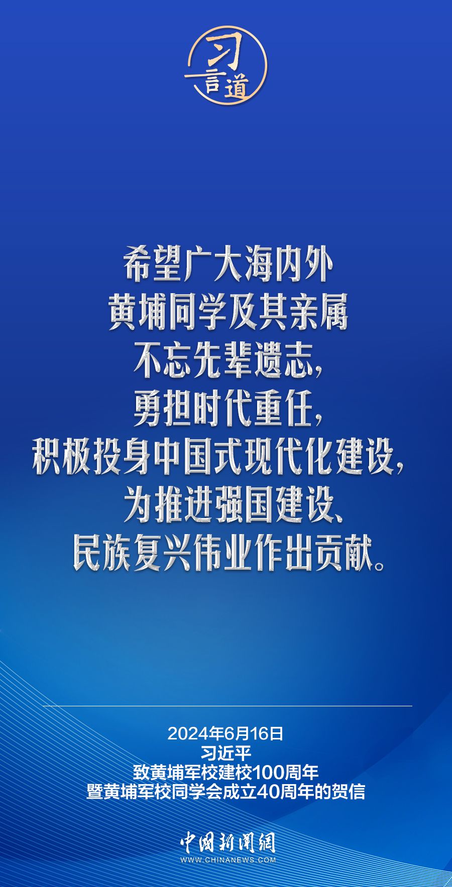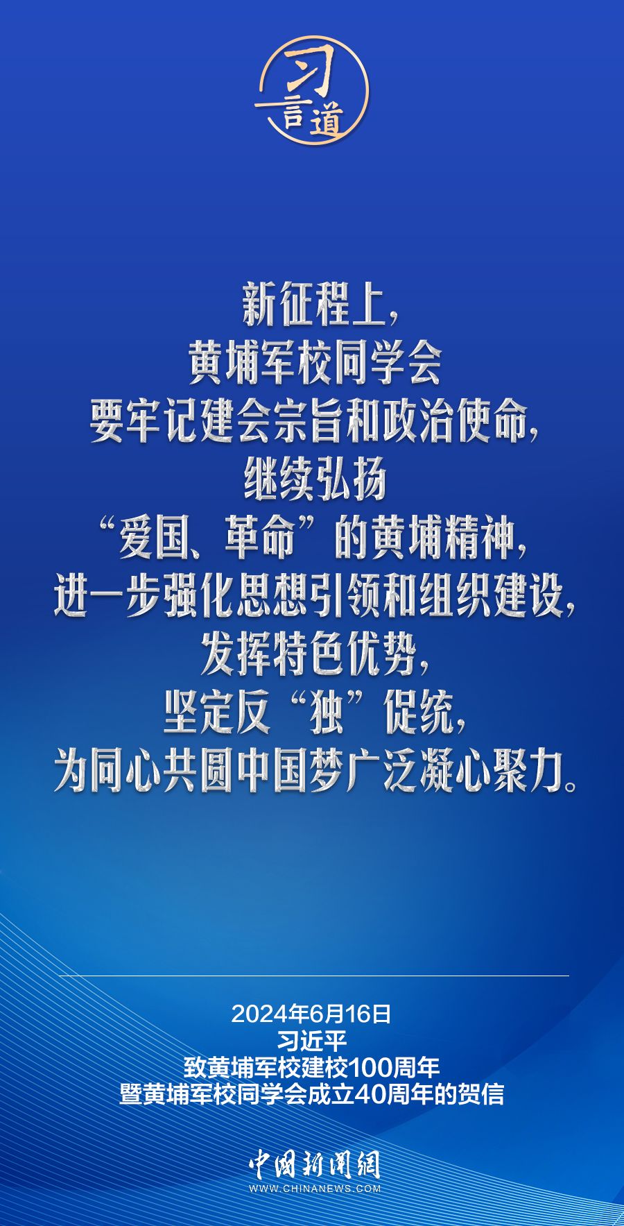 在黄埔军校建校100周年暨黄埔军校同学会成立40周年之际,中共中央总书记、国家主席、中央军委主席习近平发来贺信,代表中共中央向黄埔军校同学会表示热烈祝贺,向广大海内外黄埔同学及其亲属致以诚挚问候。习近平指出——