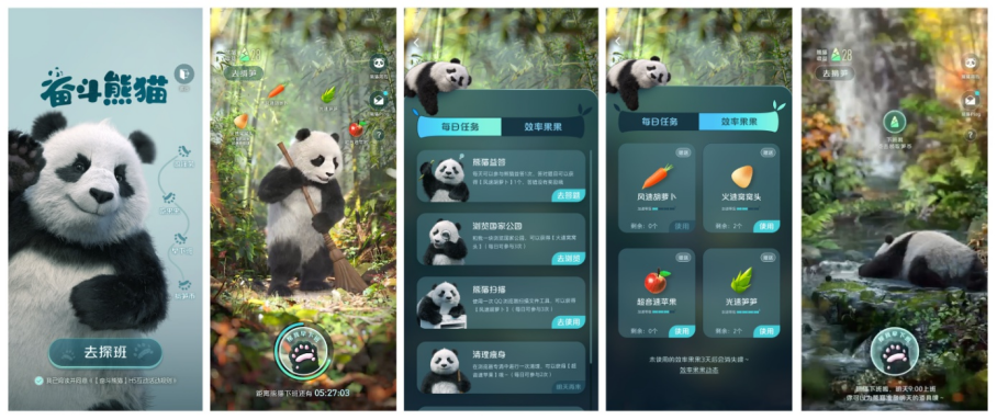 用户通过QQ浏览器App与“奋斗熊猫”线上互动同日,腾讯公司还基于“全真大熊猫”IP形象,推出“奋斗熊猫”线上互动项目,并联合央视频推出熊猫合影线上互动。