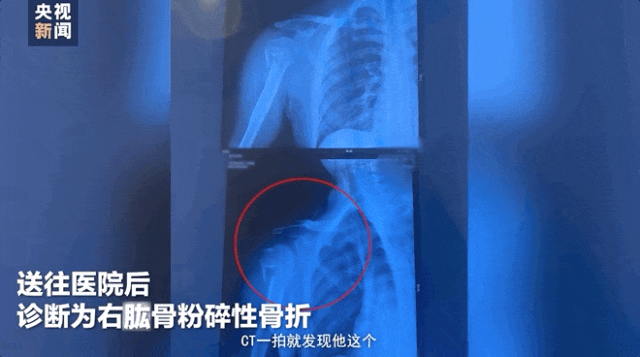 导致右手臂粉碎性骨折