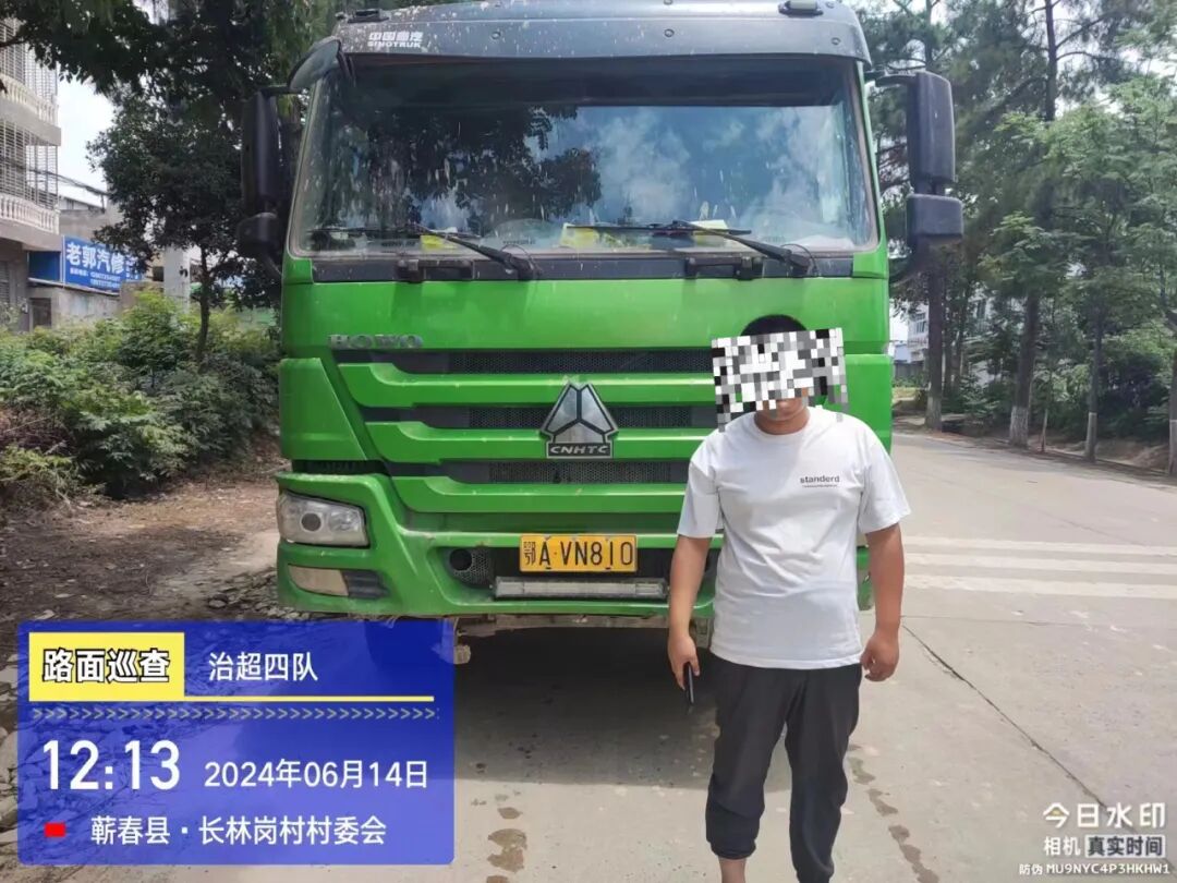 2024年6月14日,李某2驾驶鄂AVN810重型自卸货车行驶至漕河长林岗路段时,因载货超过最大允许总质量100%以上被执勤民警现场查获,该车整备质量12500kg,过磅后车货总量达到67240kg,属于严重超载违法。