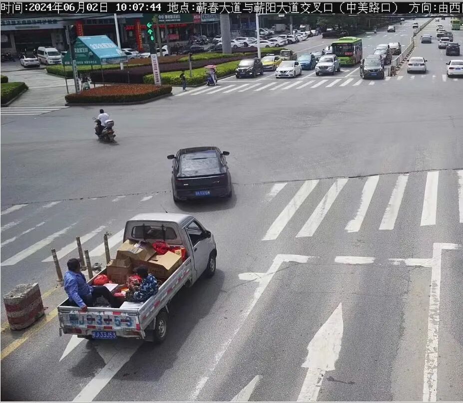 2024年6月2日10:07,鄂J33J53轻型小货车后车厢违法载人,被处以记3分、罚款500元。