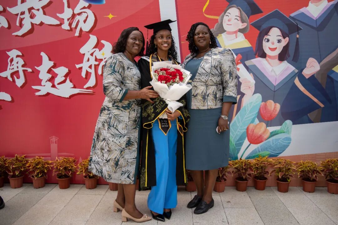 该校医学部2018级毕业生玛丽来自坦桑尼亚,她的妈妈和阿姨专程从家乡乘坐十多个小时的航班,不远万里赶来参加她的毕业典礼。玛丽来到中国6年了,她很喜欢中国的文化,曾多次邀请她的家人来中国游玩。“一起见证女儿人生中的一次的重要时刻,借此机会来中国体验不同的文化,我很开心。”玛丽的妈妈说。根据计划,玛丽毕业后将回家实习一年,然后再次来到中国,继续攻读研究生。