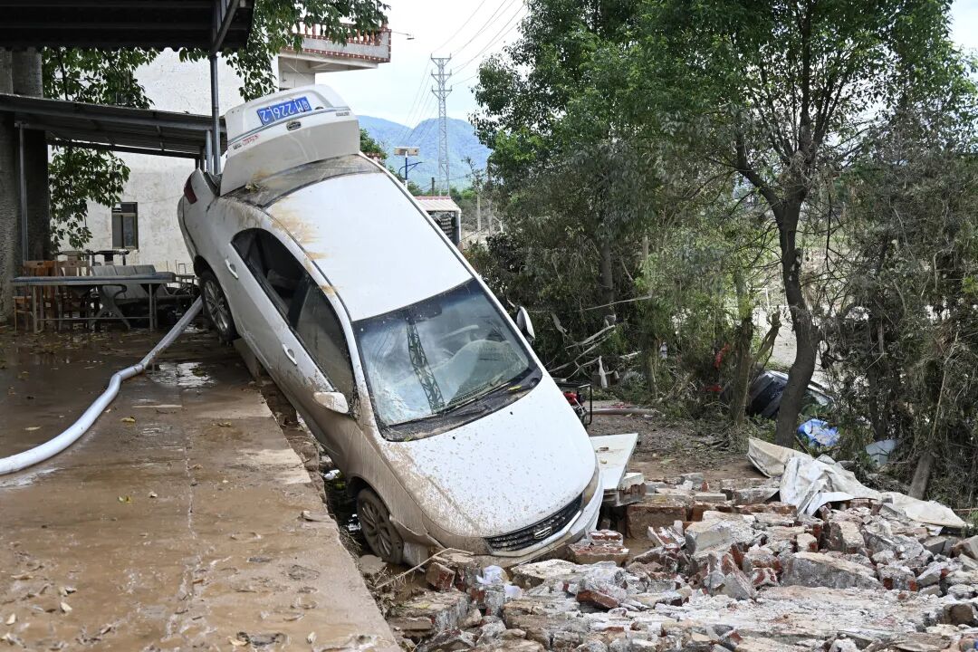 6月19日,广东省梅州市蕉岭县福岭村一车辆受损。中新社记者 陈楚红 摄