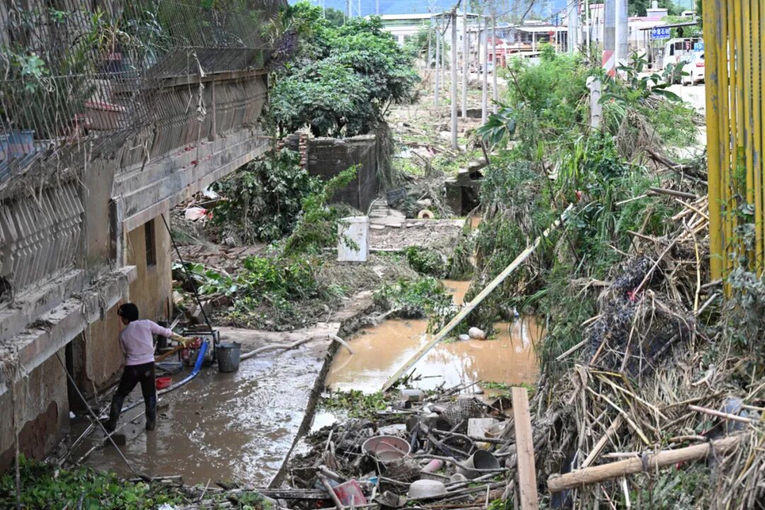 记者直击广东梅州灾后清理工作现场