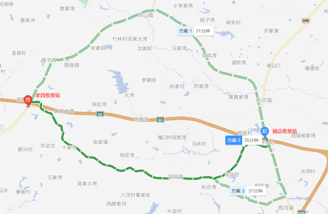 绕行路线一:杨店收费站→316国道→王杨线→玉龙大道→孝昌收费站
