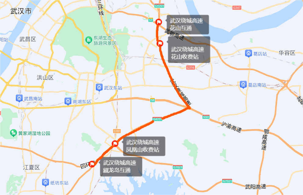 花山互通至藏龙岛互通段(K58+465至K85+941双向路段)花山收费站入口、凤凰山收费站入口,禁止所有危化品运输车辆通行