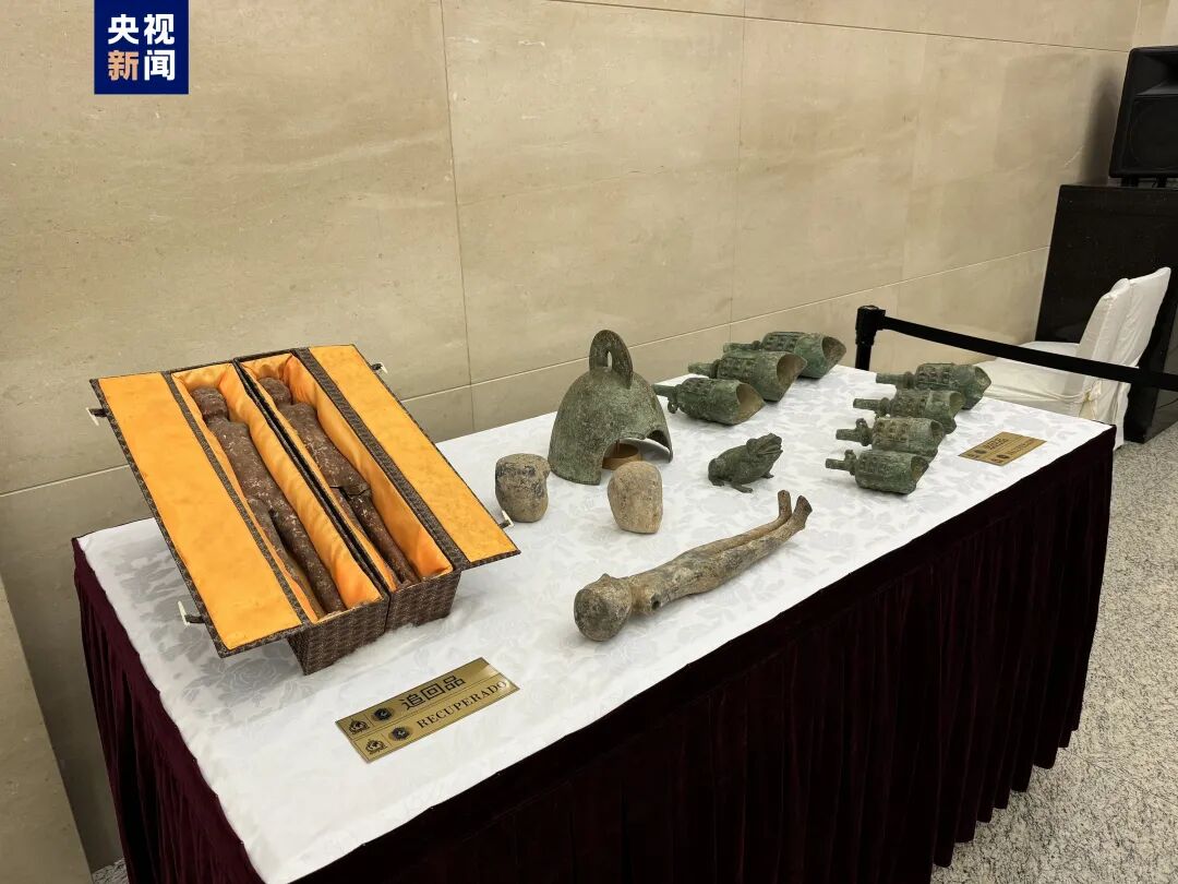 此次返还的14件文物艺术品为非法出境文物。经初步判断,其中7件青铜甬钟的时代应为春秋晚期;其余陶俑3件、俑头2件、铜蛙1件、铜盔1件,时代在汉代至南北朝之间。