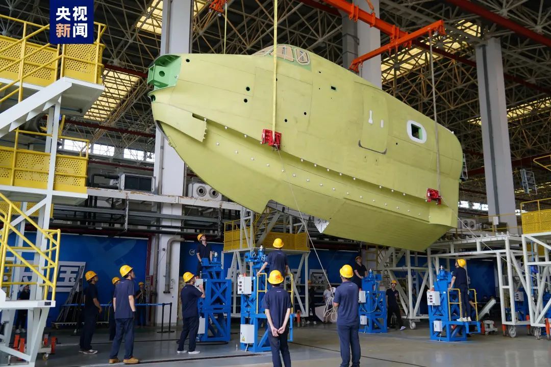 7月1日,从中国航空工业集团了解到,我国自主研制的大型水陆两栖飞机AG600批产首架机的机头大部件完成交付,标志着这型飞机小批量总装生产工作正式开启。