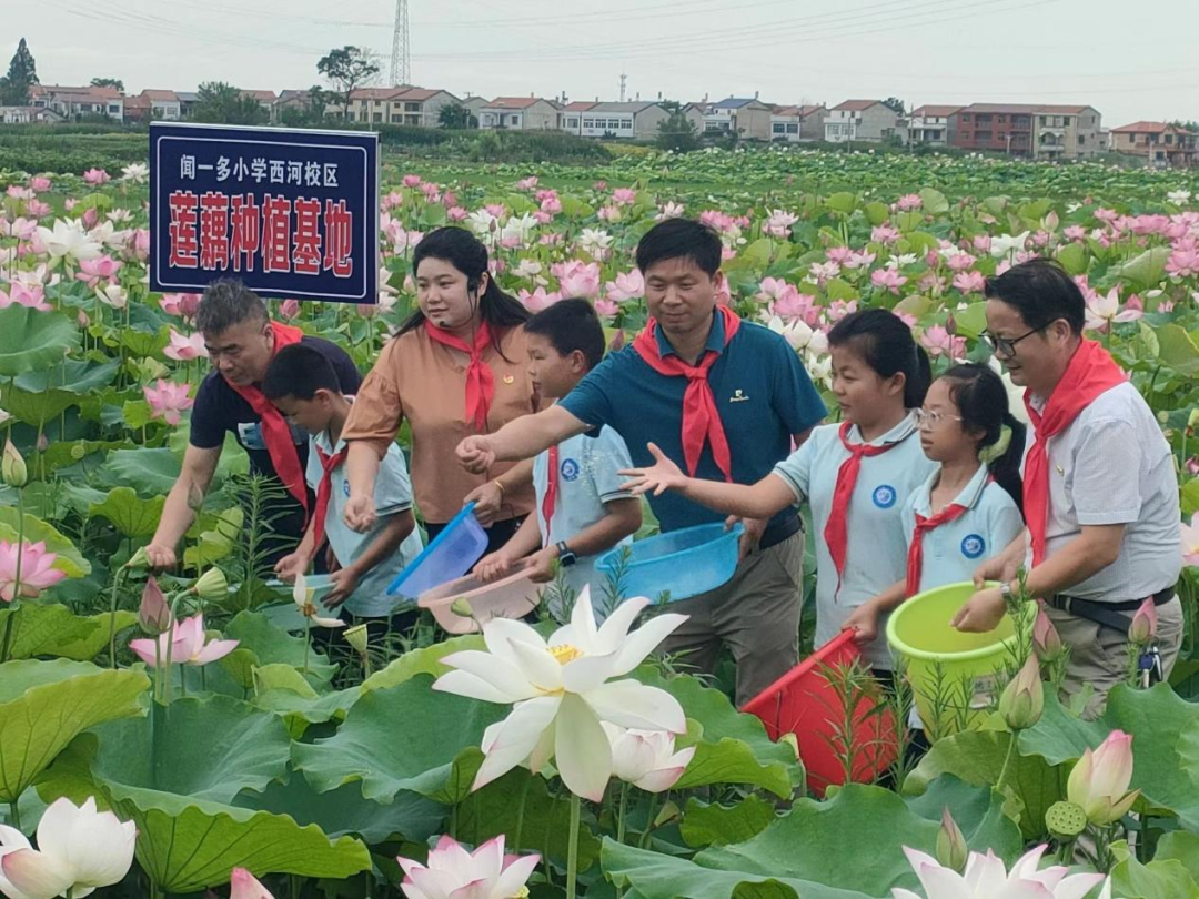 为贯彻落实《义务教育劳动课程标准》理念及育人导向,近几年来,浠水县闻一多小学西河校区持续开展了“九孔藕种植”劳动实践系列活动:莲藕种植、除草施肥、赏荷采莲、挖藕品美食等,学习劳动知识,掌握劳动技能,引导学生动手实践、接受锻炼、磨炼意志,感受莲出淤泥而不染的品质,培养学生德、智、体、美、劳全面发展,了解家乡的特色物产,增强文化自信。