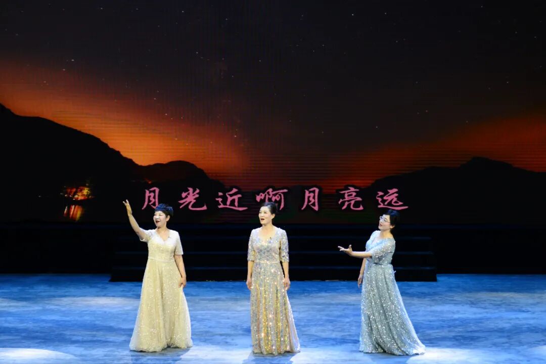 越剧新歌《相遇》,歌剧白毛女选段《扎红头绳》、轻歌剧《风流寡妇圆舞曲》、歌曲《月光近、月亮远》、女声独唱《边境的小鸟》、《上春山》等节目通过歌舞的艺术形式,表现过往时代下人们的心理活动,通过一个个生动,感人的故事,传达出对家乡,爱人的思念、对生活的希冀和美好祝愿。沐浴光辉成长,永赞盛世今朝,百年筑梦,愿薪火相传向未来。