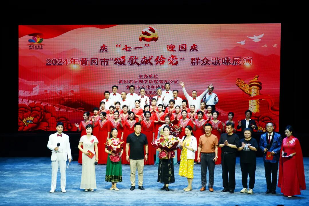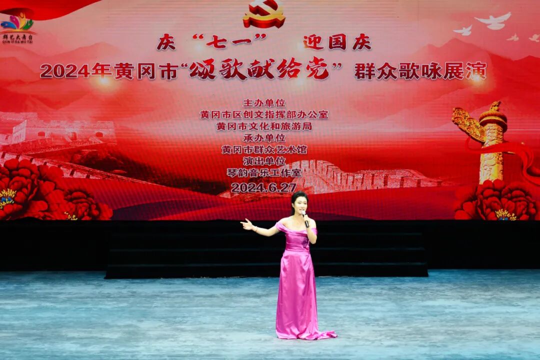赓续红色血脉,凝聚奋进力量。为庆祝中国共产党成立党103周年,弘扬党的优良传统,6月27日,“颂歌献给党”群众歌咏展演琴韵工作室专场活动在黄梅戏大剧院小剧场举行,市区相关部门负责人、周边市民、文艺爱好者约200人现场观看,群文黄冈进行现场直播,约3万多人线上观看,直播间好评如潮。