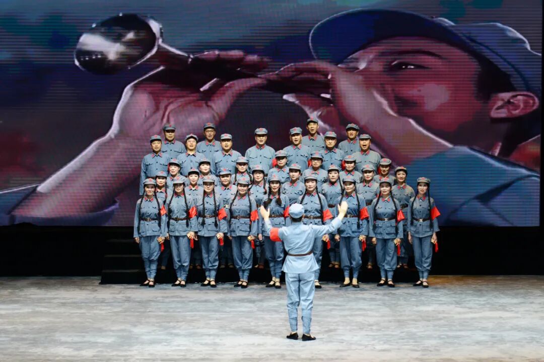 开幕是一部浩荡恢弘的史诗吟唱——《长征组歌》的第七部分《到吴起镇》,通过气势磅礴的合唱与朗诵,讲述红军长征时历经千险,最终到达吴起镇会师的英勇故事。