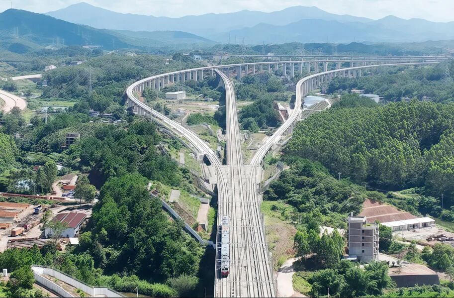 梅龙高铁沿线地形地貌、地质条件复杂,全线桥隧比达83.73%,正线桥梁92座,隧道52座。开工建设以来,为确保工程质量和进度,中国铁路广州局集团有限公司和参建单位克服地质条件复杂、山区气候多变等因素带来的诸多困难,保质保量地完成了建设任务。