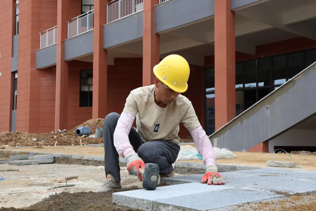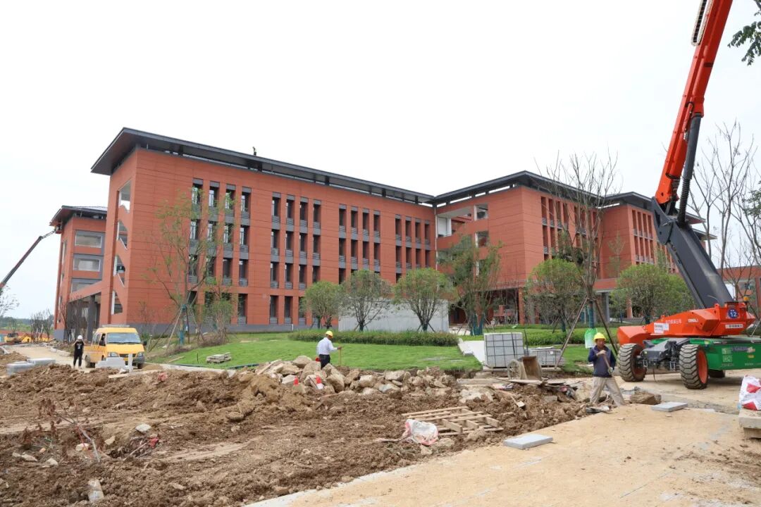 红安县职职教中心新校区项目生产负责人张超军说:“目前我们室外工程已经做到了90%,剩余的还有部分铺贴工作,局部的小范围的绿化没有完善,大概有200多人每天在加班加点抢。然后室内装修的话,一共15栋楼,已经完成了13栋楼,还有两栋楼正在紧锣密鼓施工。外墙工程基本结束了,现在我们主要室内工作在做联调联试。”