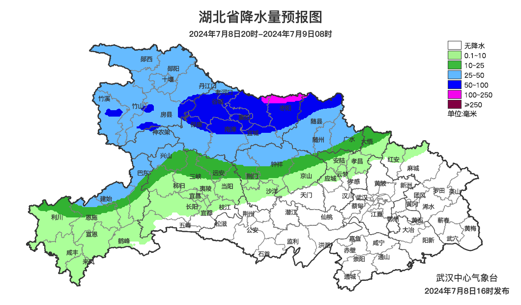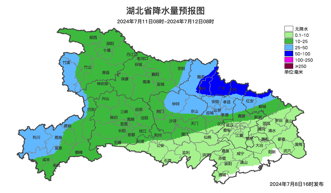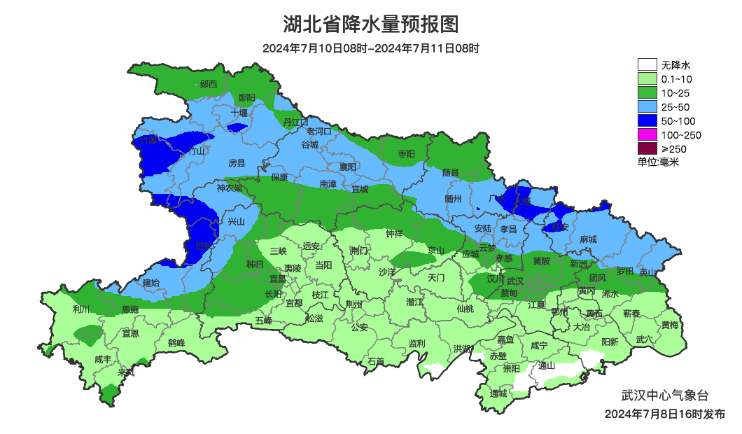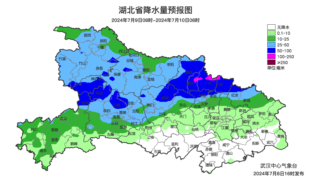 预报来源:武汉中心气象台2024年7月8日16时预报