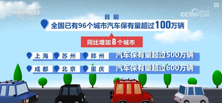 目前,全国已有96个城市汽车保有量超过100万辆,同比增加8个城市。其中,上海、苏州、郑州汽车保有量超过500万辆。成都、北京、重庆汽车保有量超过600万辆。
