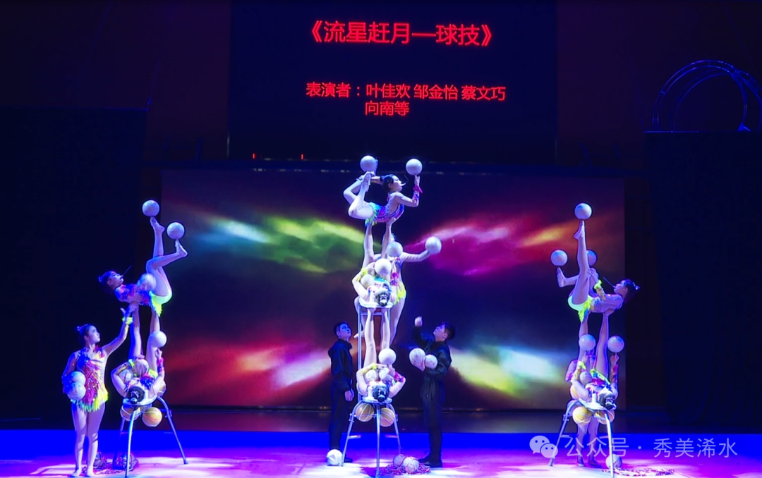 7月7日晚上,演出现场热闹非凡,在悠扬的音乐声中,飘逸唯美的绸吊表演、惊险刺激的魔术表演以及配合默契的双人吊子等节目逐一上演,演员们精湛的技艺和扎实的功底赢得了观众热烈的掌声和喝彩。活动中还穿插了互动环节,有效激发了现场观众的参与度,让整场演出氛围更加热烈和欢快。