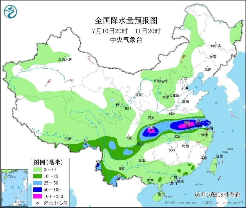 中央气象台10日18时继续发布暴雨黄色预警,预计10日20时至11日20时,四川东北部和西南部、重庆中北部、湖北西部和北部、河南南部、安徽中部、江苏南部、上海以及西藏东南部、云南西部等地的部分地区有大到暴雨。