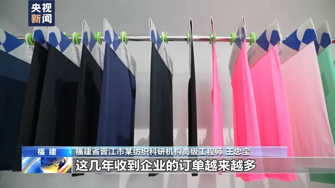 福建省晋江市某纺织科研机构高级工程师王忠宝:我们经过两年时间研发,筛选出具有高凉感值且可纺性好的材料纺丝,这几年收到企业的订单越来越多。