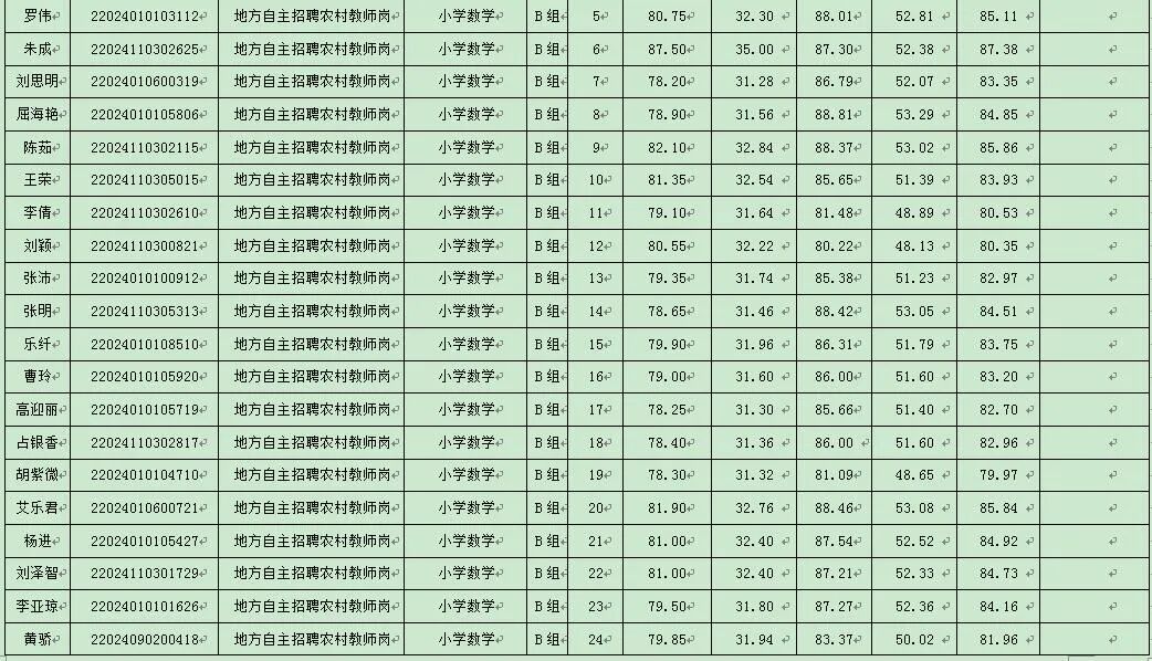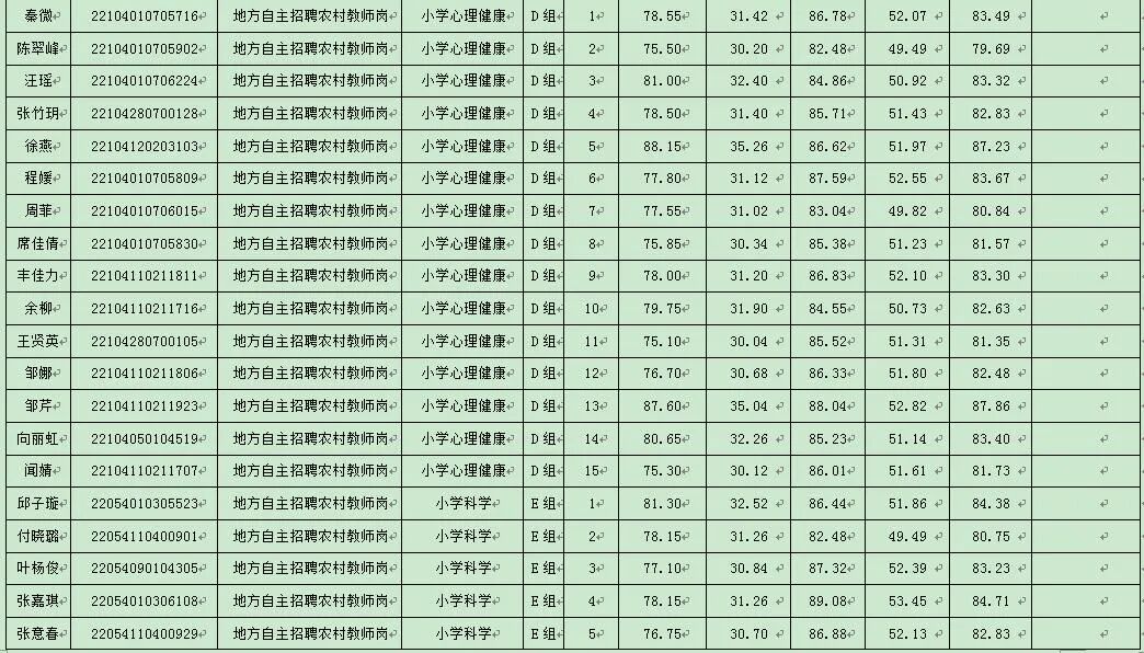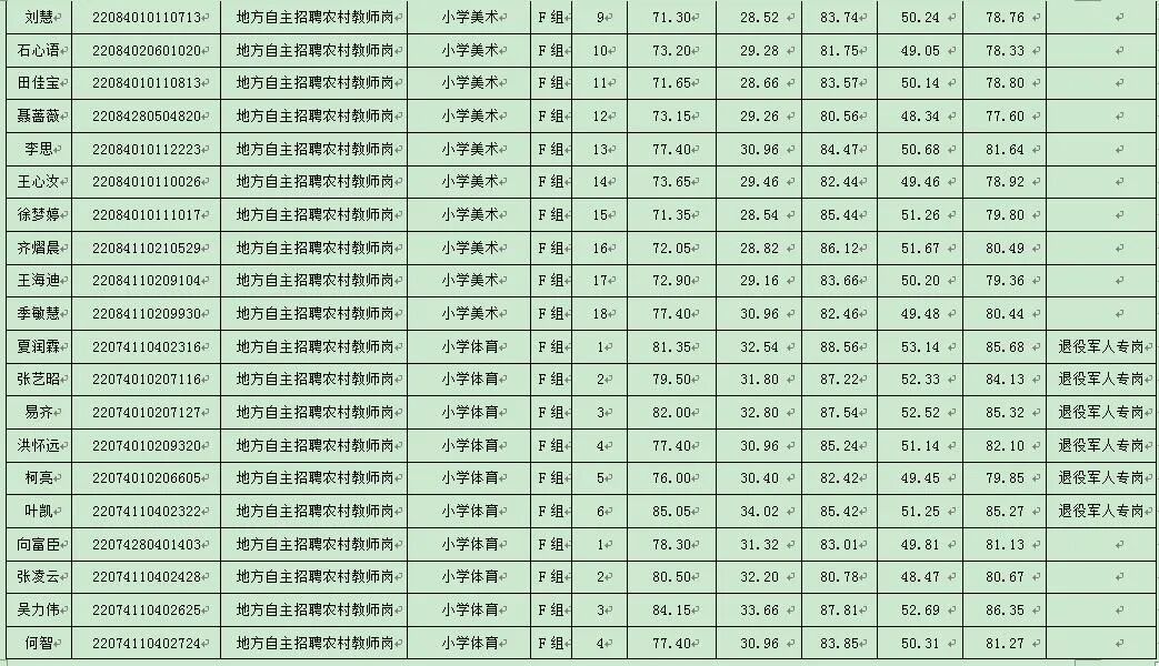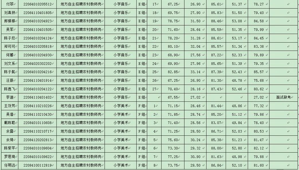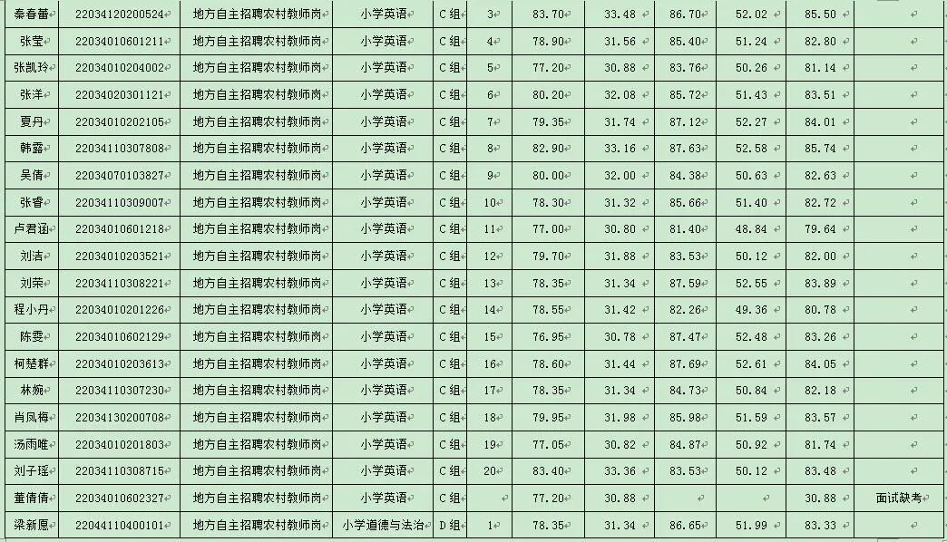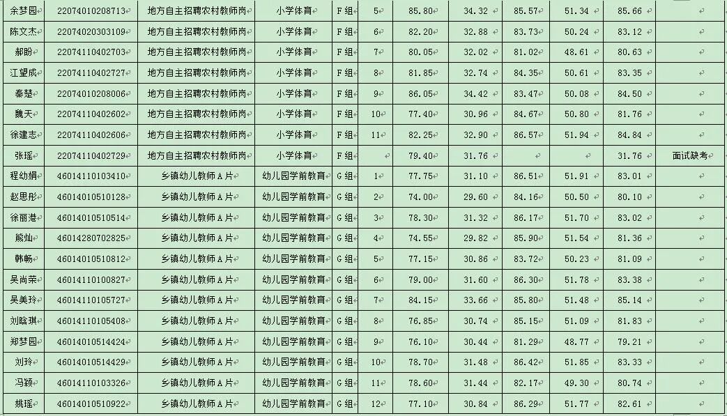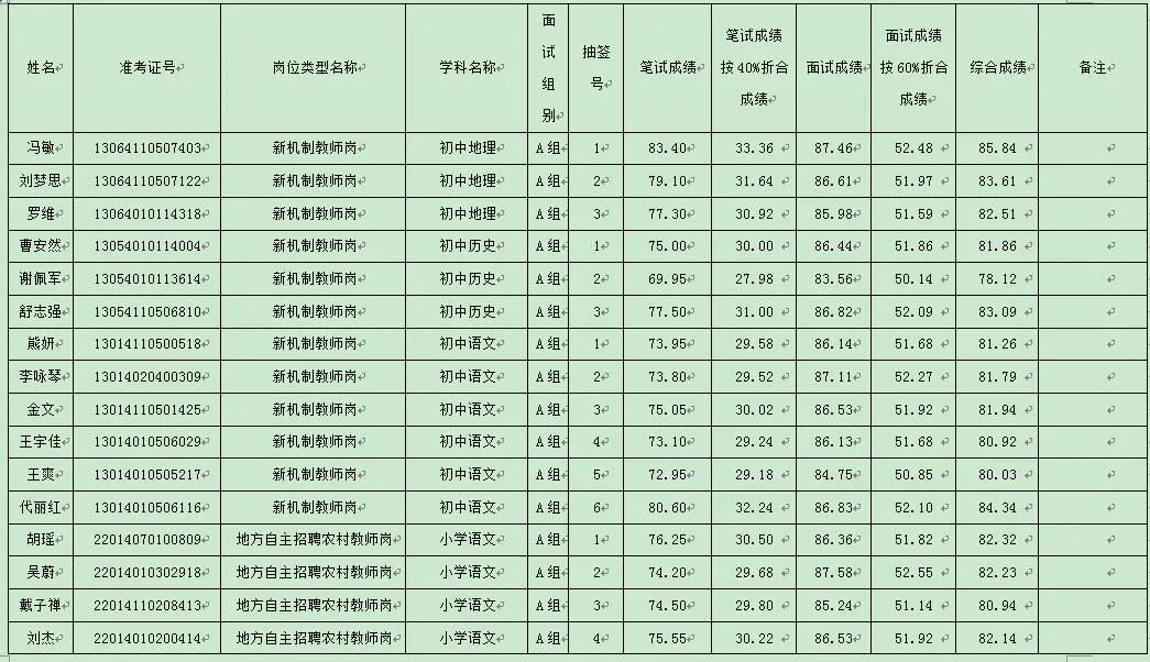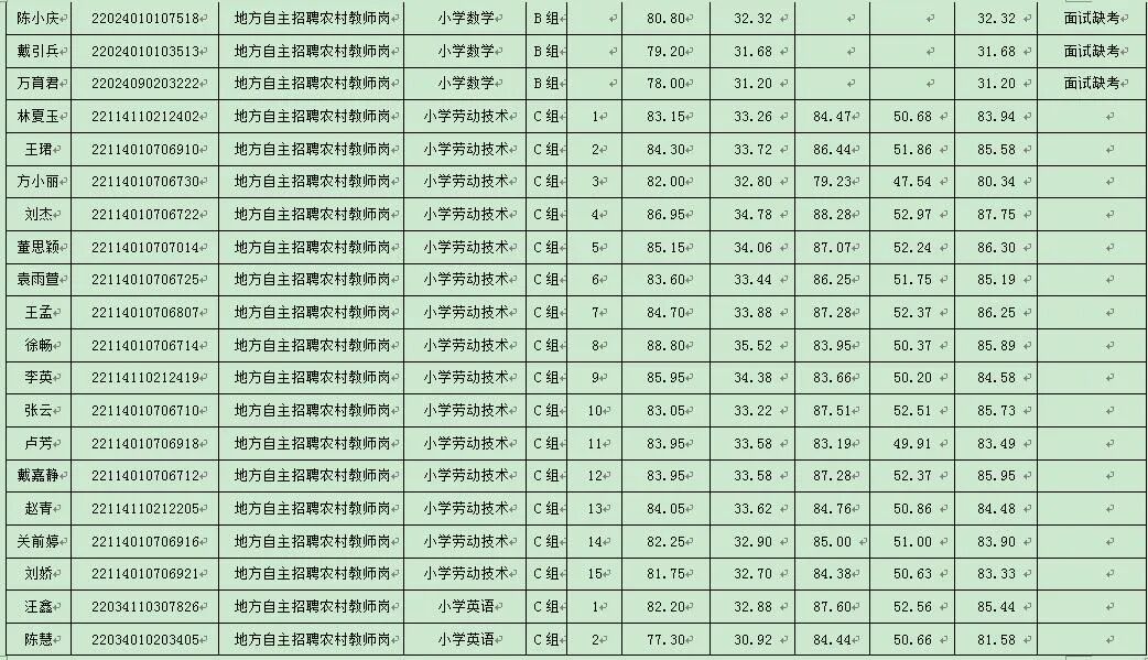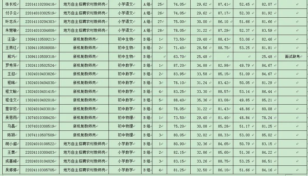 根据《湖北省2024年中小学教师公开招聘公告》及《红安县教育系统2024年专项公开招聘教师公告》精神及相关规定,经过面试,现将考生综合成绩公告如下: