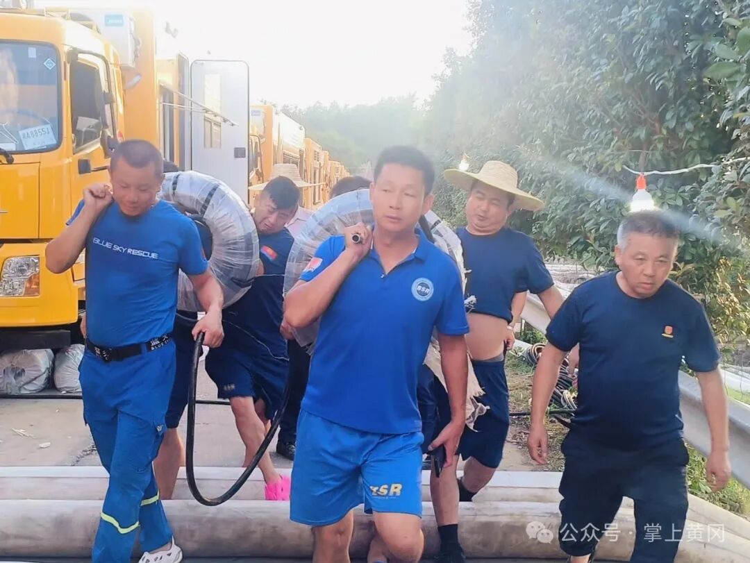 “一湖分两省,,湘鄂本一家。”灾情发生后,黄冈市应急管理局枕戈待旦,严阵以待,随时准备增援华容县。7月13日,在接到省应急管理厅下达的“支援湖南灾区抢险排涝”指令后,市应急管理局立即集结了以市应急救援中心和市蓝天救援队为主力阵容的17人救援队伍,携带“龙吸水”一体化抢险排涝泵车6台、橡皮艇2艘,以及后勤保障车、接力泵、一级泵等抗洪抢险机械设备,紧急驰援华容县团州乡。