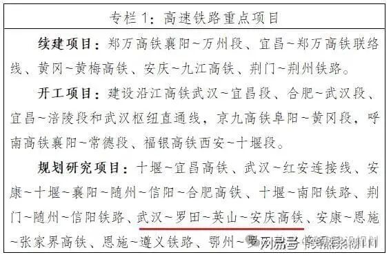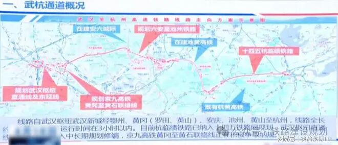 根据《湖北省“十四五”铁路发展规划》:展望至2035年,全省形成“七纵六横”高速铁路网。其中“六横”通道之一为武杭通道,是湖北加密联系长三角的新通道,规划研究武汉~罗田~英山~安庆高铁。