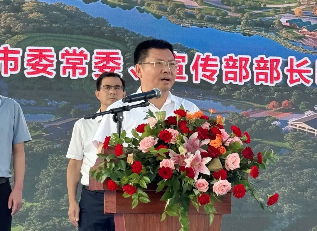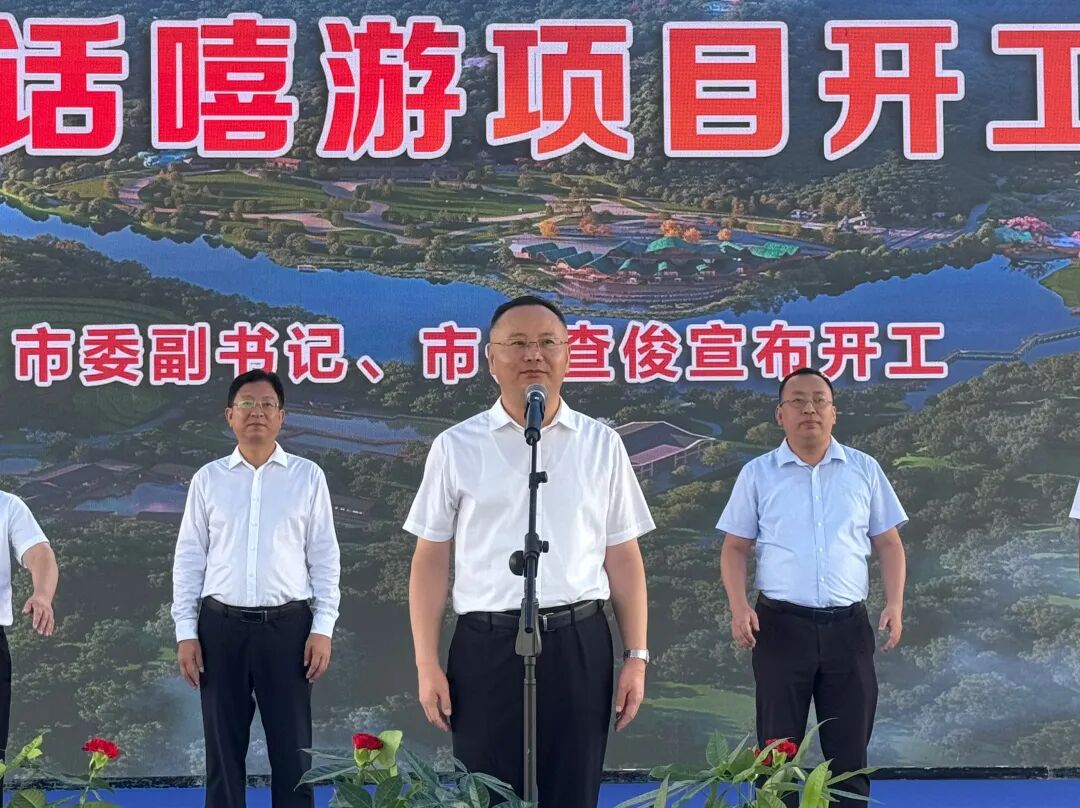 武穴市委常委、宣传部部长叶国庆致欢迎辞,他表示:湖北大话西游项目不仅是一项文旅工程,更是一项民生工程、发展工程。它的开工建设,对推动武穴全域旅游跨越式发展,建设湖北旅游名镇,带动乡村振兴和农民共富具有重大战略意义。他强调:一是坚持高质量建设。要始终坚持质量第一,严格施工标准,确保项目质量经得起历史和人民的检验。二是坚持高水平管理。要运用现代管理理念,创新管理模式,确保项目建设高效、有序推进,运营管理实现经济社会效益。三是坚持高标准服务。要以人民为中心,不断提升服务水平和游客体验,使大话嘻游项目成为人民群众满意的精神家园。