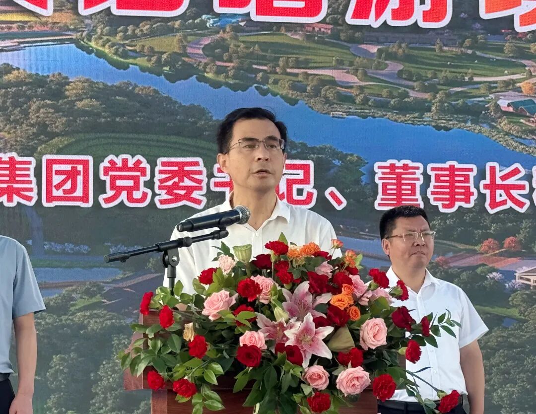 农水集团党委书记、董事长程新希介绍项目情况,同时表示集团将围绕把湖北大话嘻游项目打造成区域范围内独具特色的“爆款”旅游项目,发扬“敢为人先、勇于担当”的实干精神,严格遵守国家法律法规,与设计、监理、总承包等相关单位密切配合,加强工程管理,严把工程质量关、施工安全关、工程进度关、廉洁实施关。加快项目建设进度,确保按期完工。