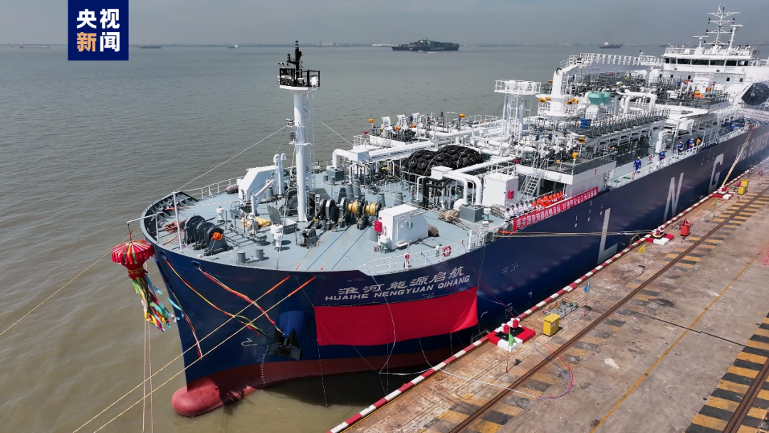 全球首款、中国首制江海直达型14000立方米液化天然气(LNG)加注运输船“淮河能源启航”号完工交付。