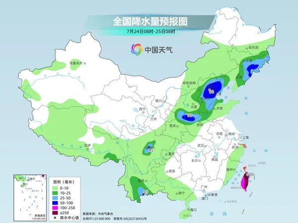 后天,吉林东部、辽宁东北部、陕西中部、山西南部、河南西北部、京津冀、山东西北部、四川盆地西部、云南南部以及台湾岛等地有大到暴雨,其中,台湾岛有大暴雨,中东部的部分地区有特大暴雨。