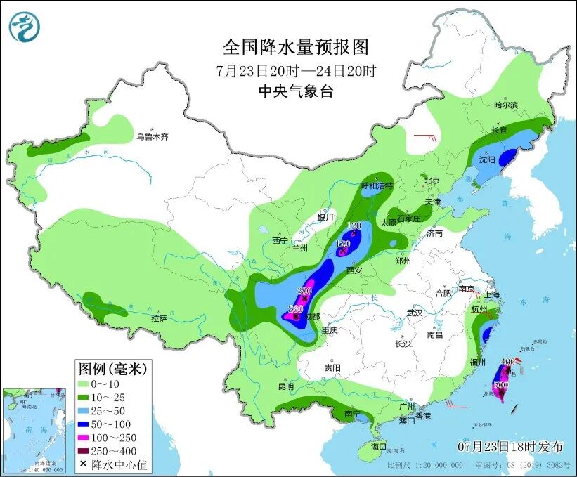 中央气象台23日18时继续发布暴雨黄色预警和强对流天气黄色预警:预计23日20时至24日20时,甘肃东部、四川盆地西部、台湾岛等地部分地区有大暴雨,四川盆地西部等地局地以及台湾岛东部和南部的部分地区有特大暴雨。辽宁中东部、山东北部等地的部分地区将有10级以上雷暴大风,最大风力可达11级以上。