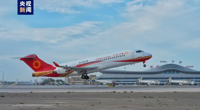 24日,国产商用飞机ARJ21开始执飞喀什—乌鲁木齐航线,ARJ21执飞航点实现新疆25个在运营机场全覆盖。