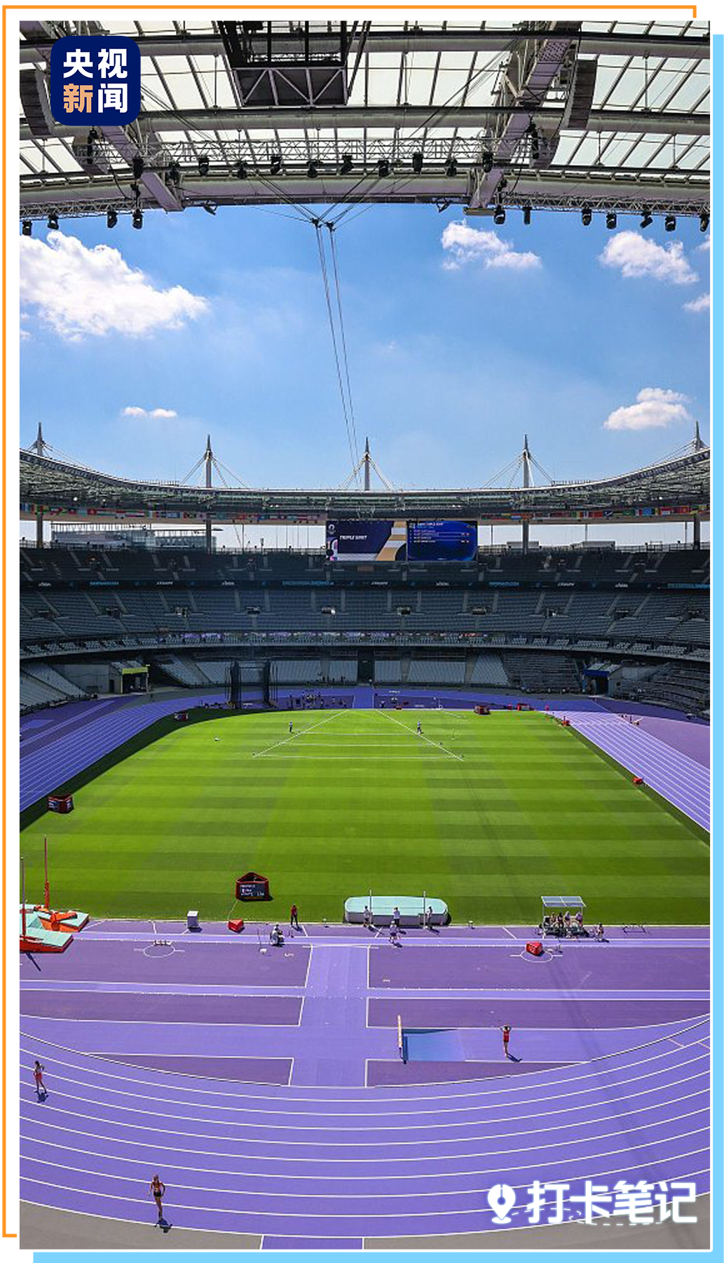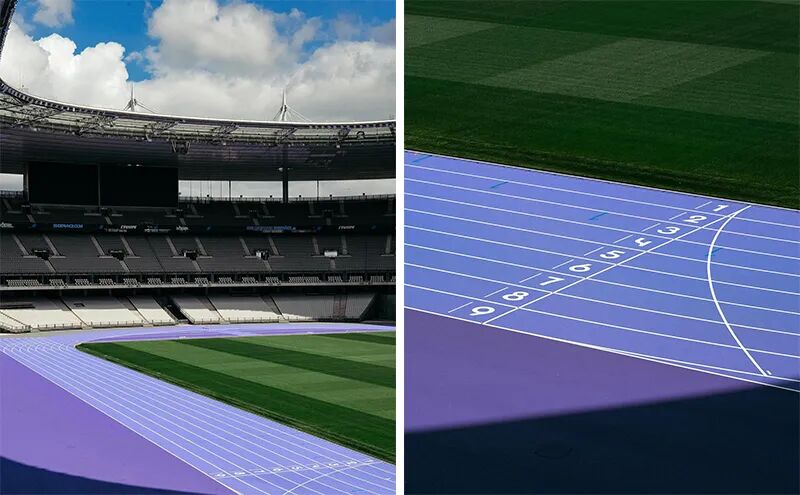 为了不负“浪漫之都”的称号,法兰西体育场跑道已被铺上一层浪漫的紫色。在梦幻的浅紫色场馆内,运动员和观众仿佛置身于法国南部普罗旺斯的薰衣草田。