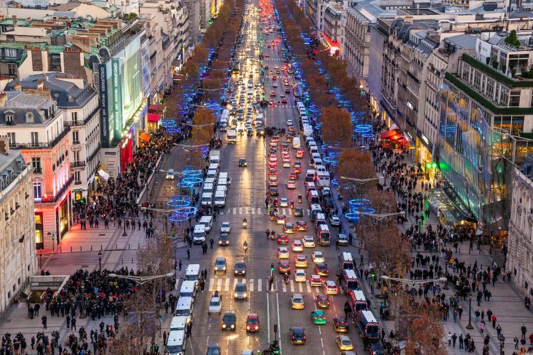大街东段两侧是平坦的草坪,在法国梧桐下漫步,你可尽享巴黎的宁静和舒适;大街西段以商业区为主,琳琅满目的全球名品,尽显巴黎的时尚和繁华。