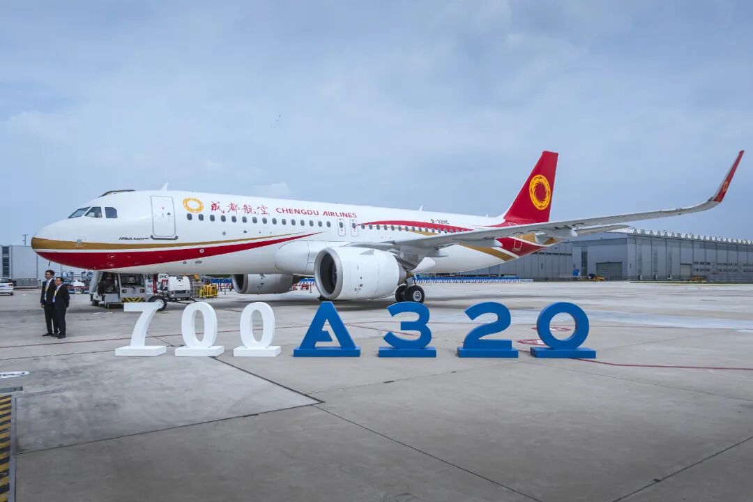 △今年7月,空客天津第700架A320系列飞机交付。
