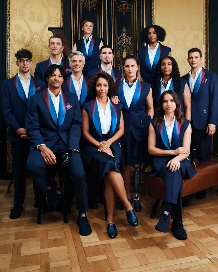 △法国代表团奥运礼服尽显法式风格的优雅和精致,将法国国旗蓝、白、红三色融入其中。